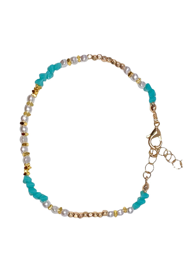 The Pretty Please Anklet is a stylish and elegant addition to any outfit. Featuring a delicate design of gold, colored, and pearl beads, this anklet will add a touch of sophistication to your look. Elevate your style with this must-have accessory.