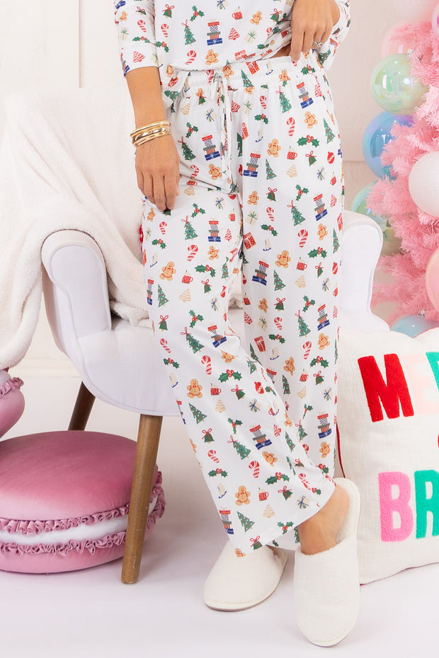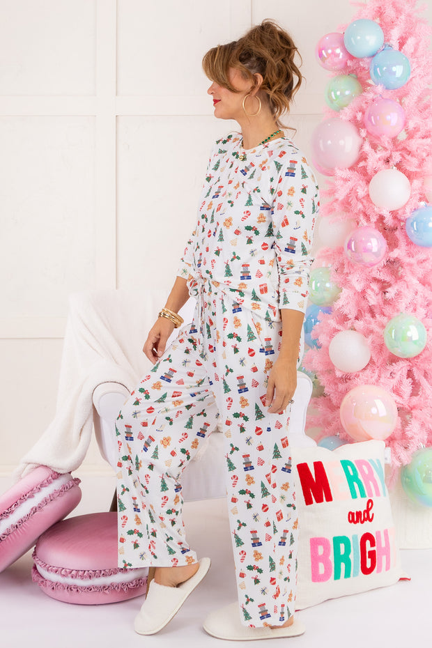 The Annie Christmas Morning PJ Set by Mary Square features a cozy rounded neckline, long sleeves, and a comfortable pull on waistband. With charming Christmas morning details throughout, this set is perfect for a festive and relaxing holiday season. Stay snug and stylish in these adorable PJs.