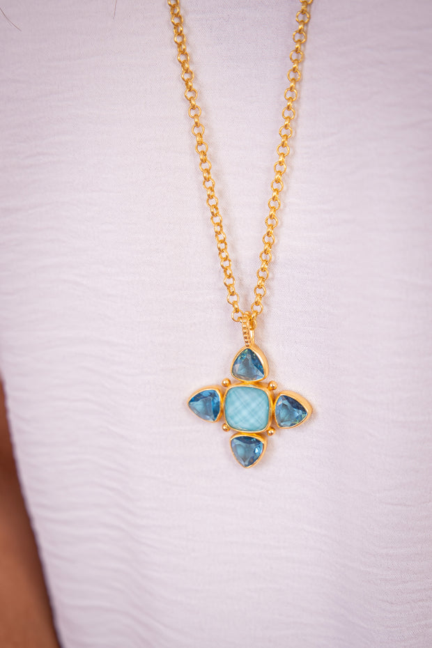 Aquitaine Pendant Necklace - Gold Iridescent Capri Blue | Julie Vos - SALE