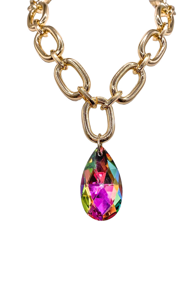 Introducing the Drifting Apart Necklace, featuring a mesmerizing Aurora Borealis pendant on a delicate gold chain. Enjoy the stunning iridescent colors every time you wear this unique piece. Made with high-quality materials, this necklace is sure to make a statement and elevate any outfit.