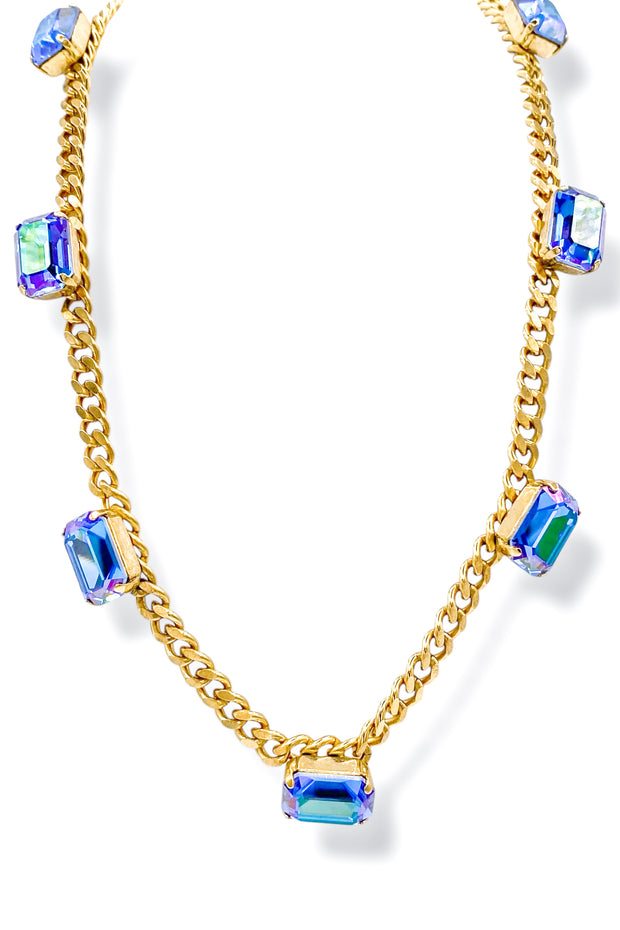 Expertly crafted with crystal details, adding a touch of elegance to any outfit. The chain design provides a versatile look that can be dressed up or down. Perfect for those seeking a sophisticated accessory to elevate their style.