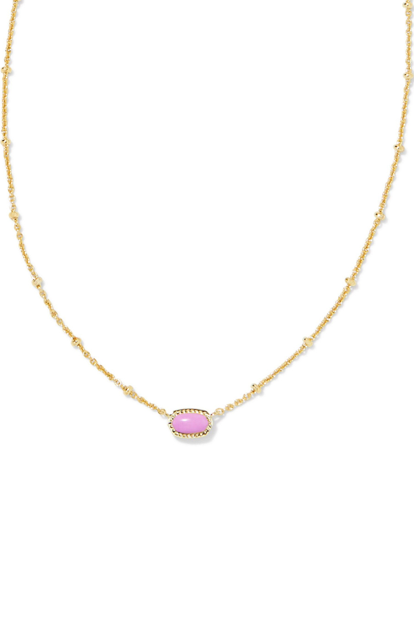 Introducing the Elisa Mini Necklace by Kendra Scott. Crafted with a delicate, dainty design, this necklace is perfect for everyday wear. Its simple yet elegant style makes it ideal for layering, adding a touch of sophistication to any outfit. Made with beautiful Gold Fuchsia Magnesite, it's the perfect addition to your jewelry collection.