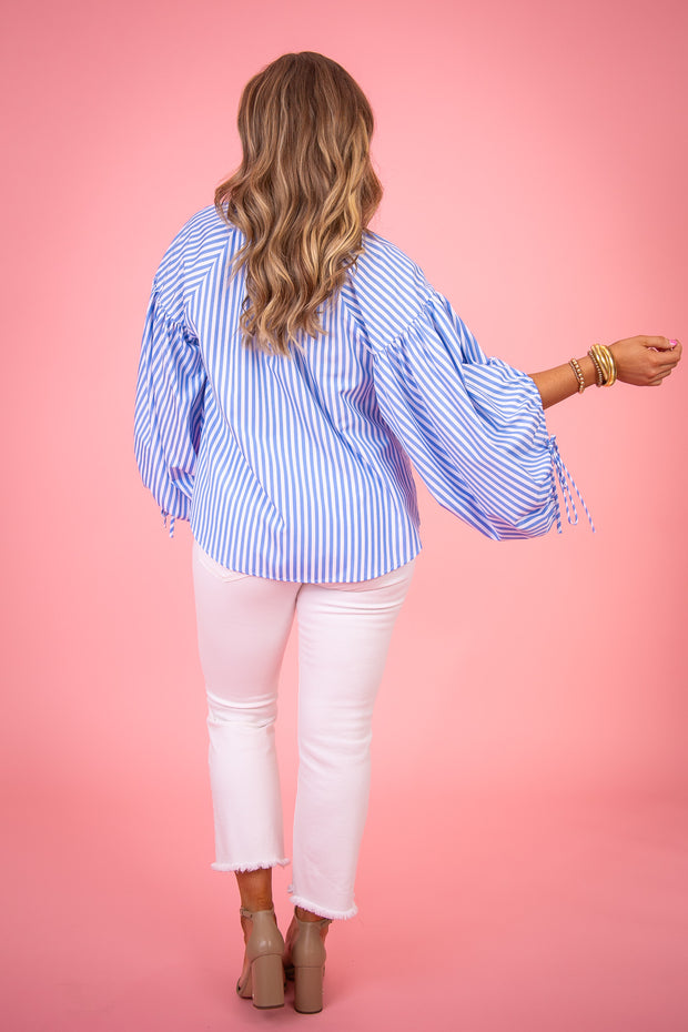 Introducing the Coastal Breeze Blouse - a must-have for any fashion-forward wardrobe. With its trendy balloon sleeves and chic striped print, this blouse effortlessly elevates any outfit. Plus, its button down front makes it easy to dress up or down. Embrace effortless style with this versatile top.