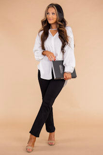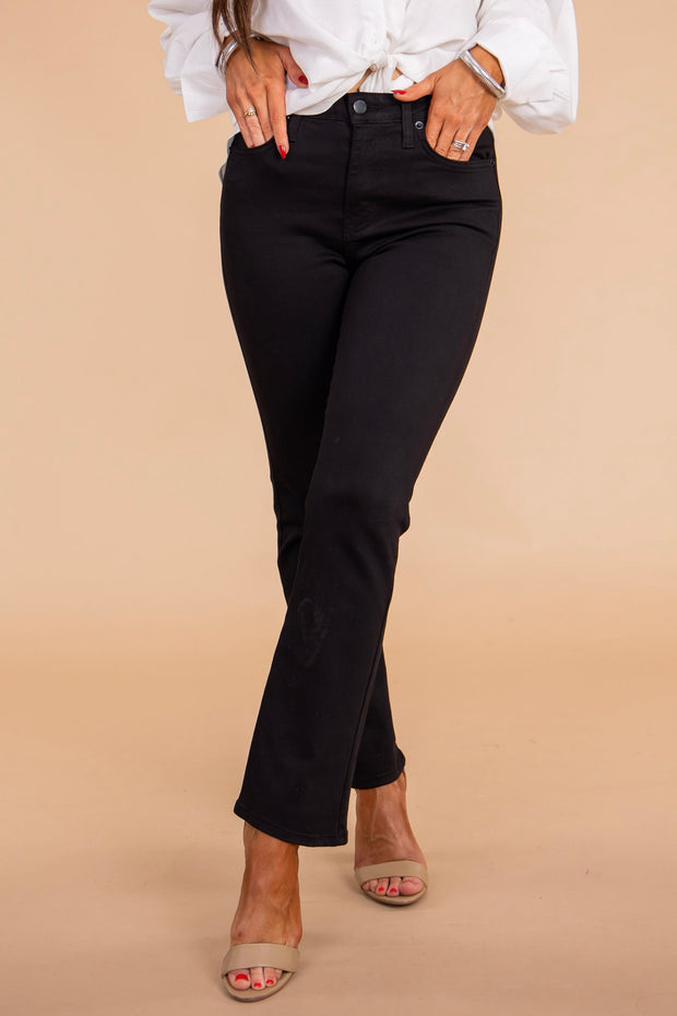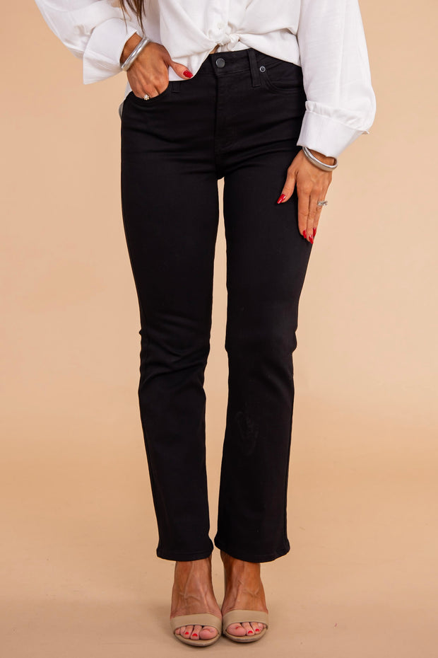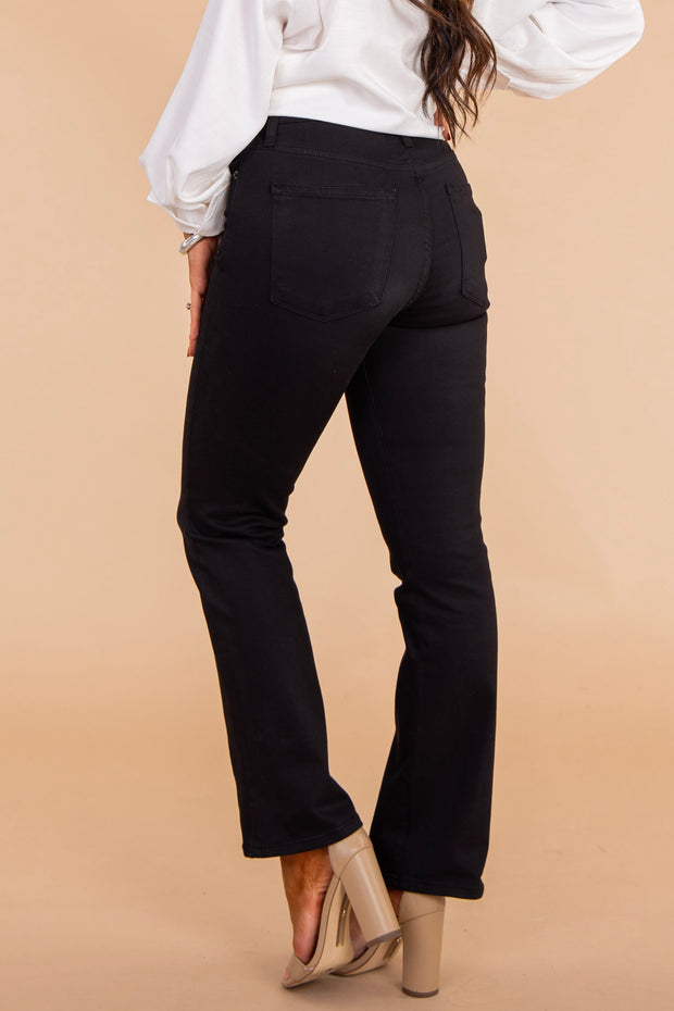 Bambino Jean is the perfect mix of style and comfort. With no distressing, functional pockets, and a zip button closure, this stretchy material creates a figure-hugging, kick flare silhouette that is sure to turn heads.
