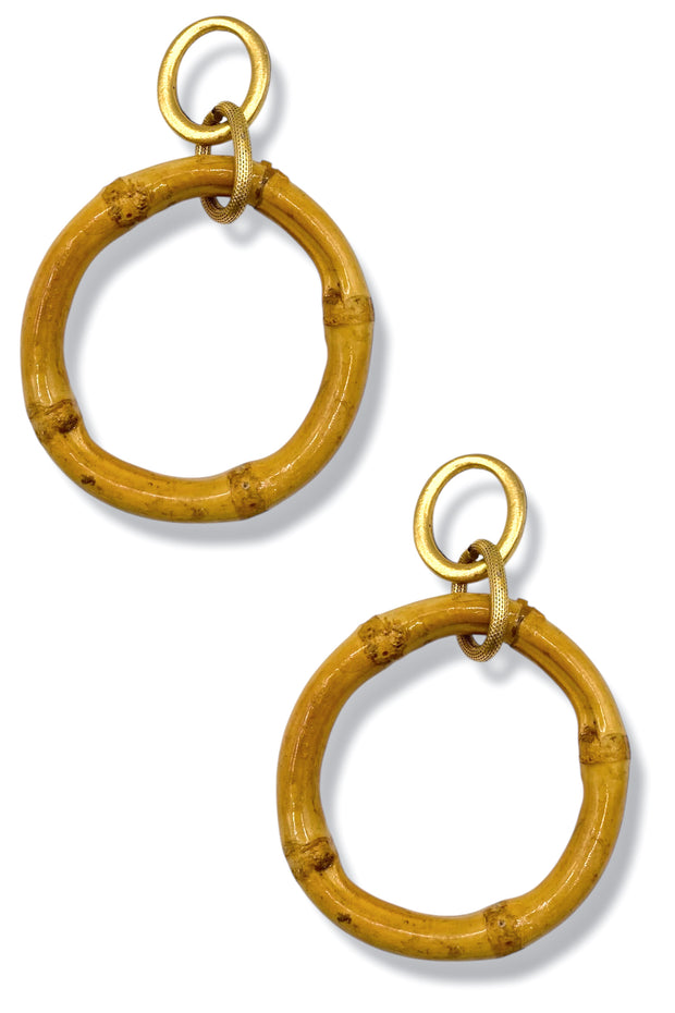 Crafted with elegant design and natural bamboo material, these Yochi Bamboo Earrings are the perfect addition to any jewelry collection. The gold accents add a touch of sophistication, while the bamboo offers a unique aesthetic. Elevate your style with these lightweight and versatile earrings.