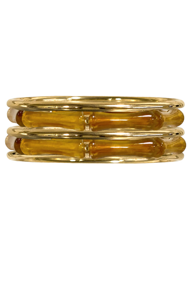 This Bracelet Set features a stylish mix of bamboo-inspired shapes and classic bangles.  Perfect for layering or wearing alone, they bring a subtle, fashionable accent to your everyday look.
