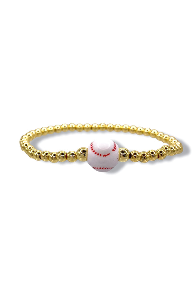 Crafted with elegant gold beads and a unique baseball charm, this bracelet adds a touch of sophistication to any outfit. Show off your love for the game in an luxurious way.