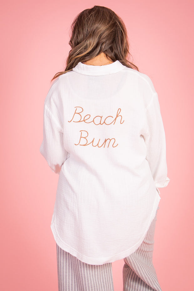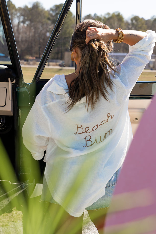 Expertly crafted for the ultimate beach look, our Beach Bum Gauze Shirt is designed with lightweight gauze material, a button down front, and top collar for a casual yet stylish look. Stay comfortable and cool with long sleeves while enjoying the sunny days ahead.