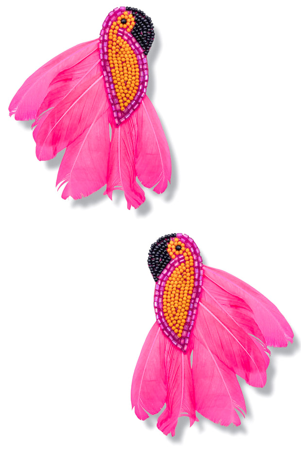 In Paradise Bead and Feather Bird Earrings *Final Sale*