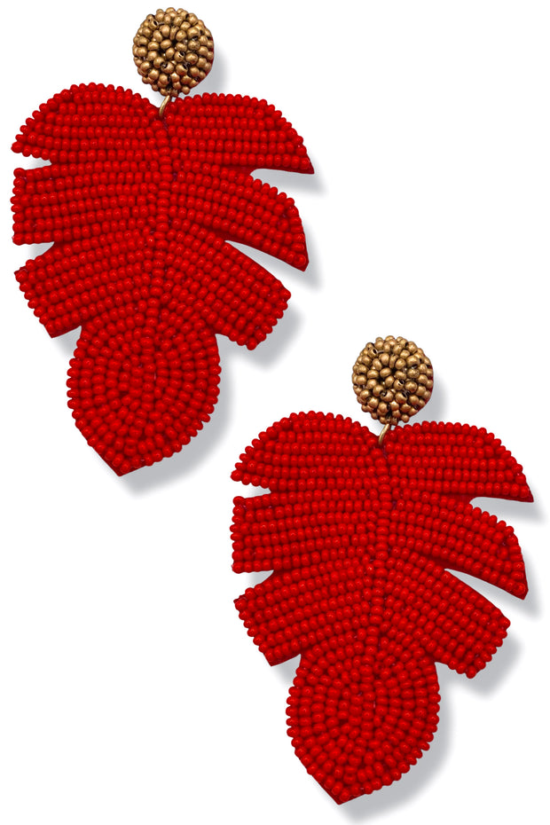 Made with beads and designed in the shape of tropical leaves, these earrings are the perfect accessory to elevate any outfit. Add a touch of elegance and style to your look with these unique and eye-catching earrings.