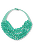Introducing the Bella Style Necklace in Lagoon. This multi-strand necklace features faceted resin beads and a trendy leather collar. The adjustable magnetic closure ensures a perfect fit. Elevate any outfit with this chic and versatile accessory.