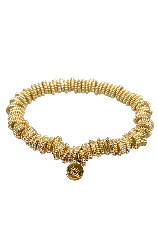 Expertly crafted with 8mm gold plated rope beads, the Bermuda Bracelet offers a sleek and stylish addition to any outfit. Its 7-inch elastic stretch band ensures a comfortable and secure fit. Elevate your look with the subtle and luxurious design of Cola Stacks.
