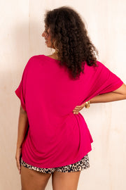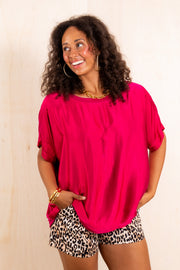 The v-neckline and short sleeves provide a comfortable and stylish fit, while the satin material adds a touch of luxury. Perfect for any occasion, this waist-length shirt will effortlessly elevate your style.