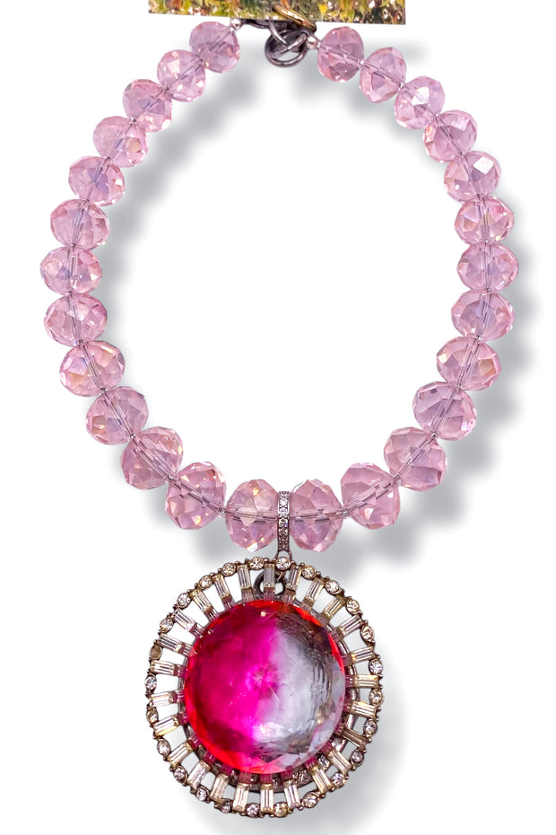 - Bicolor Hot Pink Tourmaline + Crystal 60s Brooch