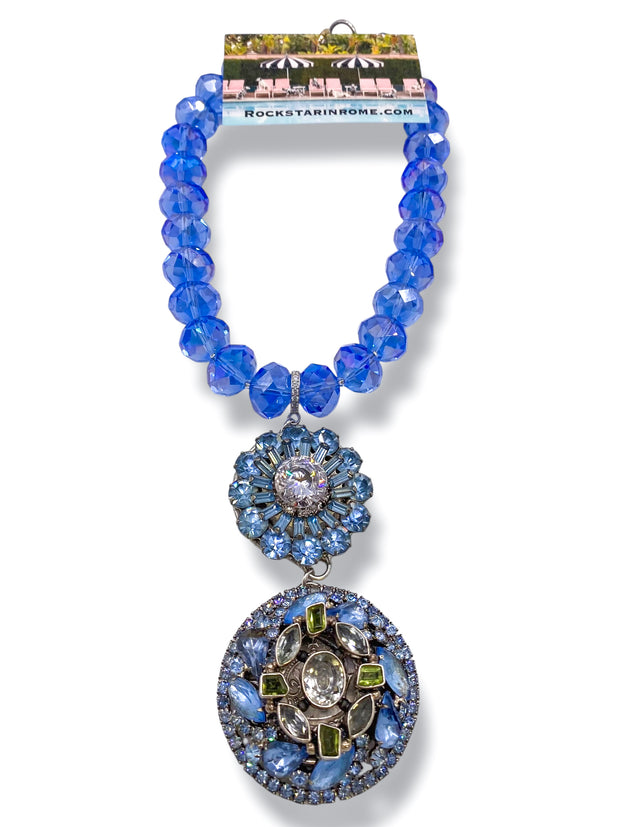 Each Rockstar in Rome piece is handmade in Atlanta, GA by designer Beth Hillier. Beth travels the world and collects vintage stones, crosses, coins, and broaches to create these stunning one-of-a-kind pieces.
