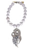Each Rockstar in Rome piece is handmade in Atlanta, GA by designer Beth Hillier. Beth travels the world and collects vintage stones, crosses, coins, and broaches to create these stunning one-of-a-kind pieces.