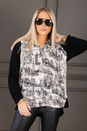 This blouse features a top collar, long sleeves, and a flattering v-neckline. The city streets print adds a stylish urban touch, making it a perfect choice for both casual and office wear. Comfortable and chic, it’s designed to complement your everyday wardrobe with ease.