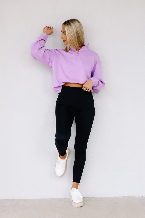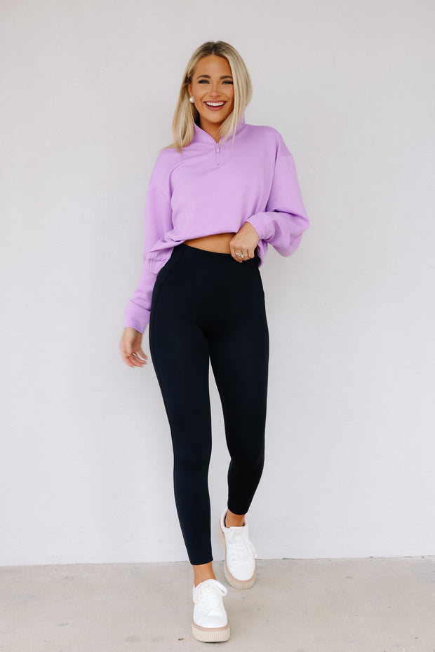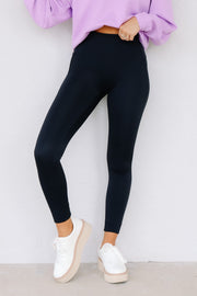 These SPANX Black Dressy Leggings feature a high waistband for a comfortable, secure fit. Their sleek design offers a polished look suitable for both casual and dressy occasions, combining style with everyday comfort.