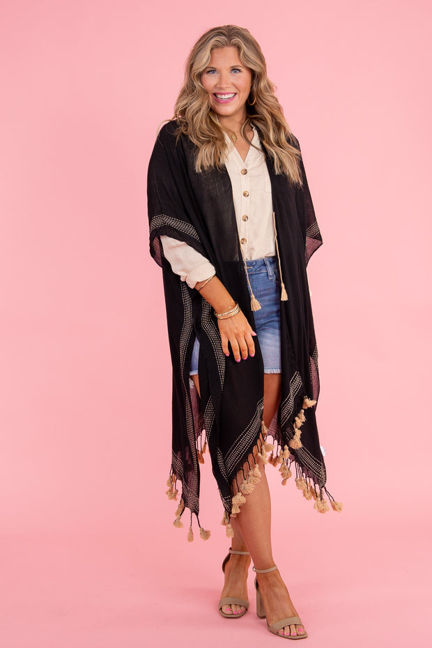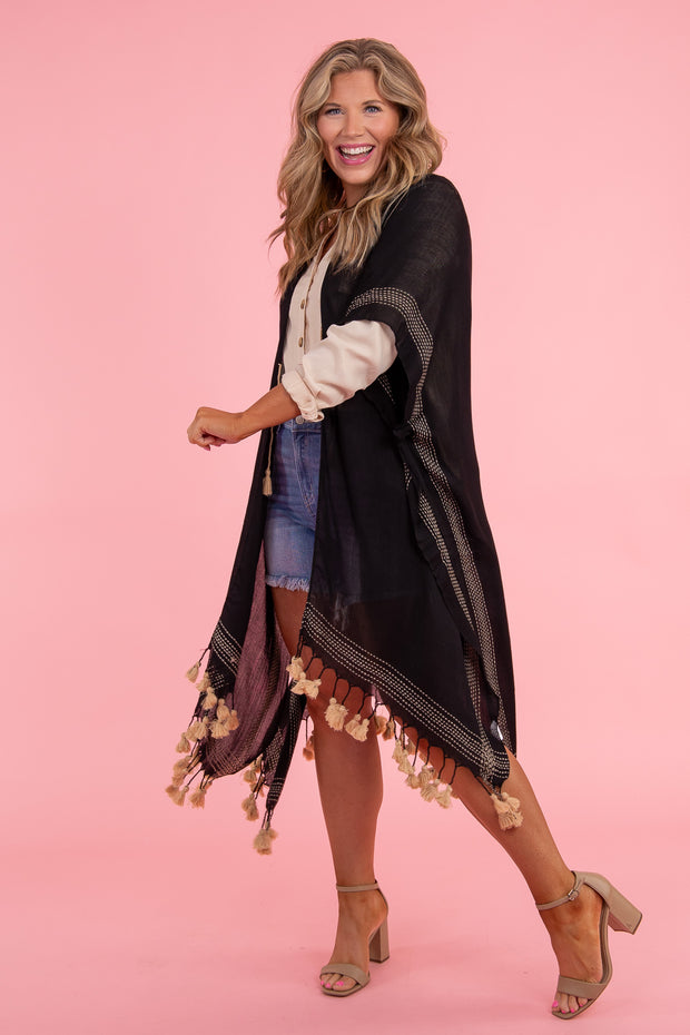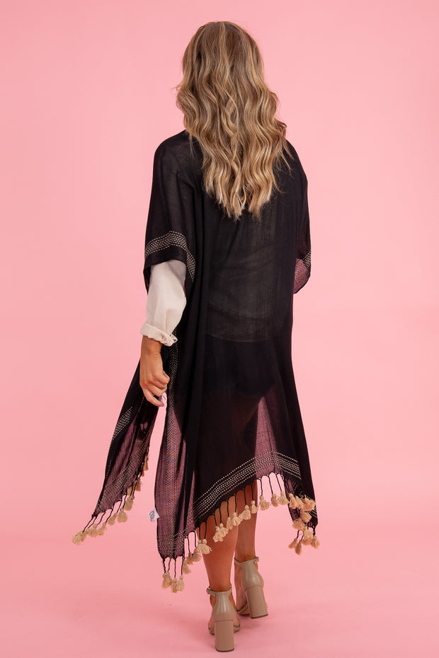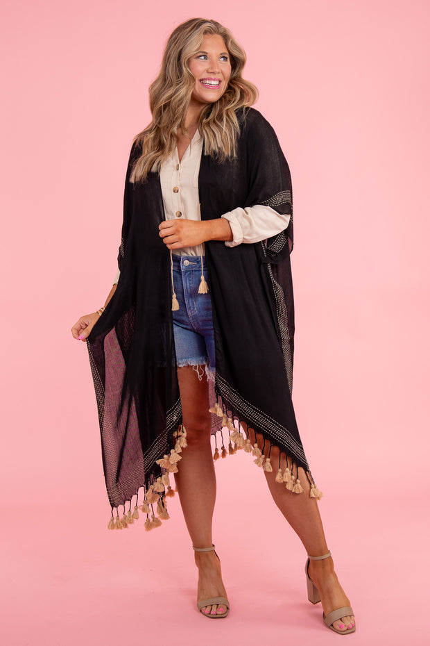 Expertly crafted from high-quality linen, the Go With It Kimono exudes effortless elegance. Its open front design and tassel detailed hem line offer a versatile and stylish addition to any wardrobe. Embrace the luxurious feel and chic aesthetic of this must-have piece.