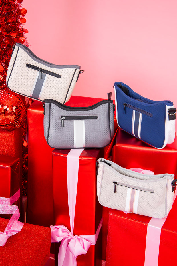 The Blair Crossbody bag features a coated material, strip detailing and a convenient crossbody strap, making it a stylish and practical choice for everyday use. Its durable construction ensures lasting use.