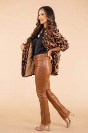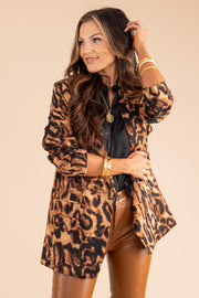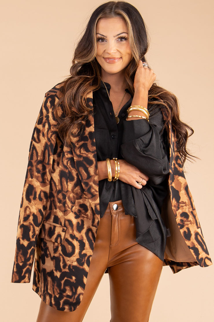 This luxurious leopard print blazer will take your style to the next level. Cut to perfection with breathable yet silky inner fabric, this piece features long sleeves, an open front, and a top collar. Reach for the stars in this chic and exclusive blazer.