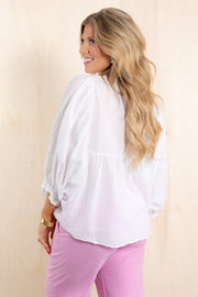 This Top features a button down bust and v neckline, providing a stylish and versatile look. The oversized fit offers a comfortable and breathable feel, making it a perfect choice for any occasion.