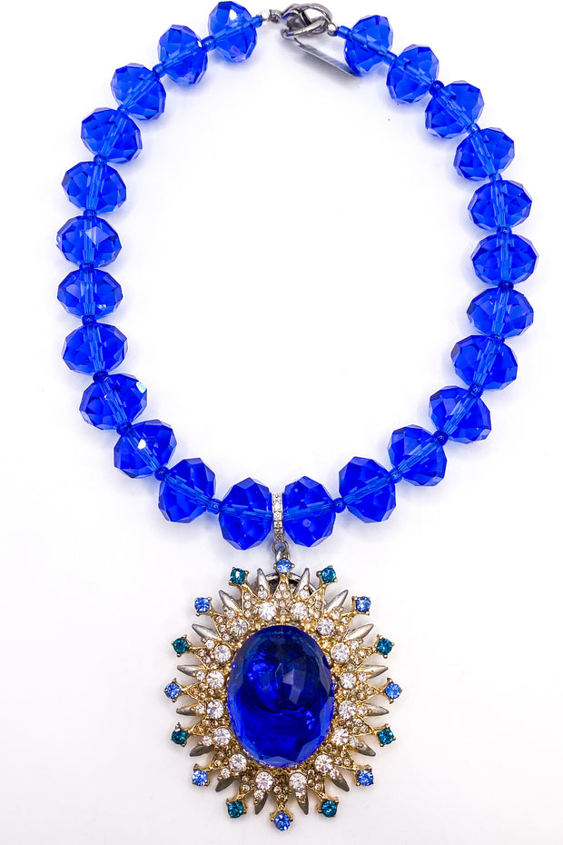 Blue Tourmaline + Crystal Vintage Brooch Necklace | Rockstar In Rome