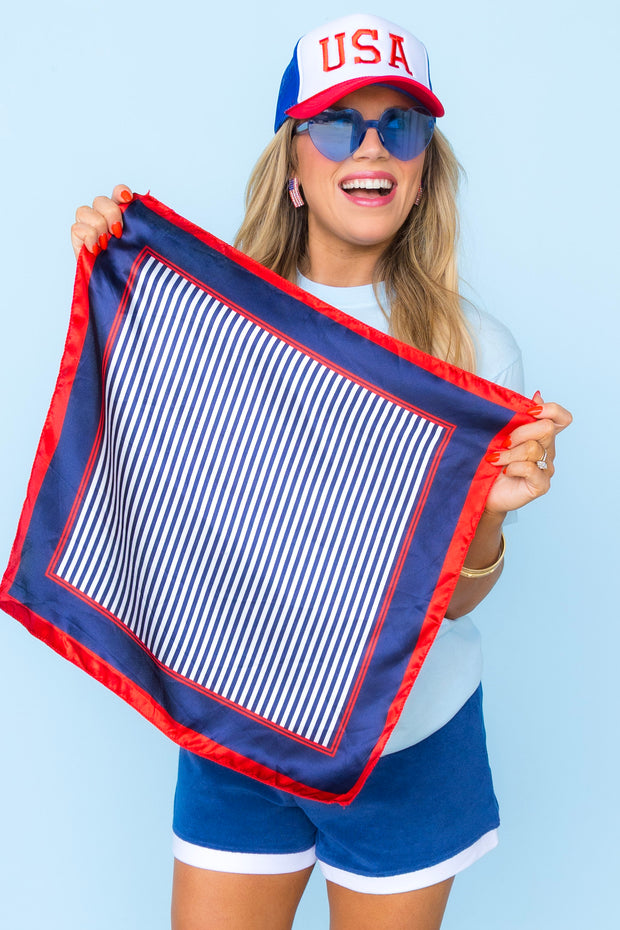 With its striped pattern and silk feel, this scarf adds a touch of elegance to any outfit. Made with quality materials, it's both fashionable and functional. Grab yours today!
