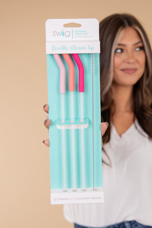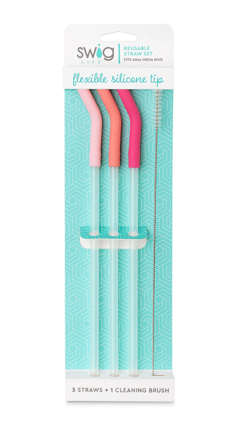Sip, Sip, Hooray! Go eco-friendly and add our Reusable Straw sets to your Swig order for the ultimate sustainable routine. Featuring a silicone flexi-tip in an array of colors, these straws will be their new fave!