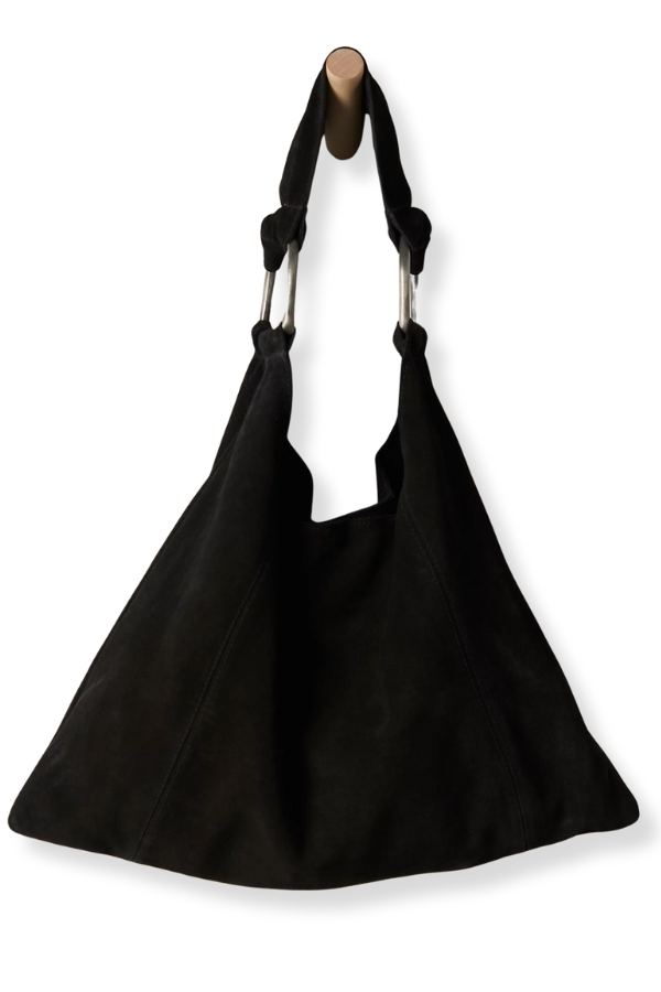 Designed to be a forever classic in your bag collection, this stand-out staple is featured in a stunning suede silhouette and slouchy, relaxed fit with defined metal buckle detailing at shoulder strap for an added special touch. Slouchy fit, stunning suede fabrication, defined metal buckle detailing at top, snap top closure, fully lined interior, interior zip pocket