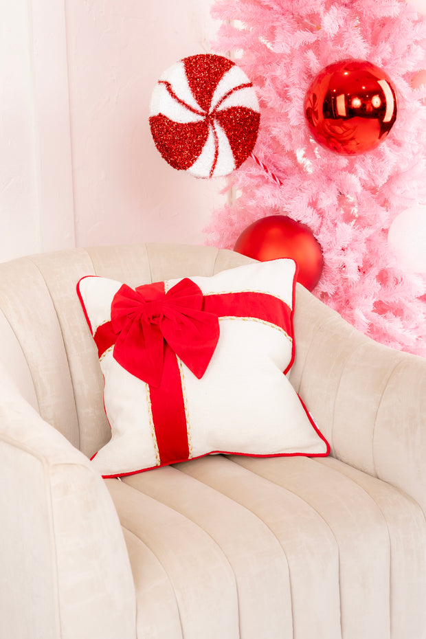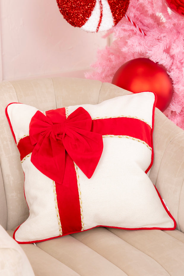 Add a sweet touch of holiday charm to your decor with our Christmas Bow Pillow! Featuring a cream pillow with a bow detailing this cozy accent pillow is the perfect way to bring festive cheer to your living space.