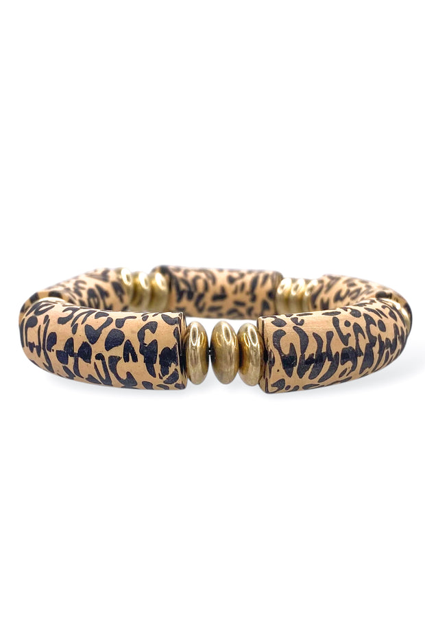 Featuring a chic cheetah print design, this bracelet adds a touch of boldness to any outfit. It is both fashionable and durable. Add a playful twist to your look with this unique accessory.