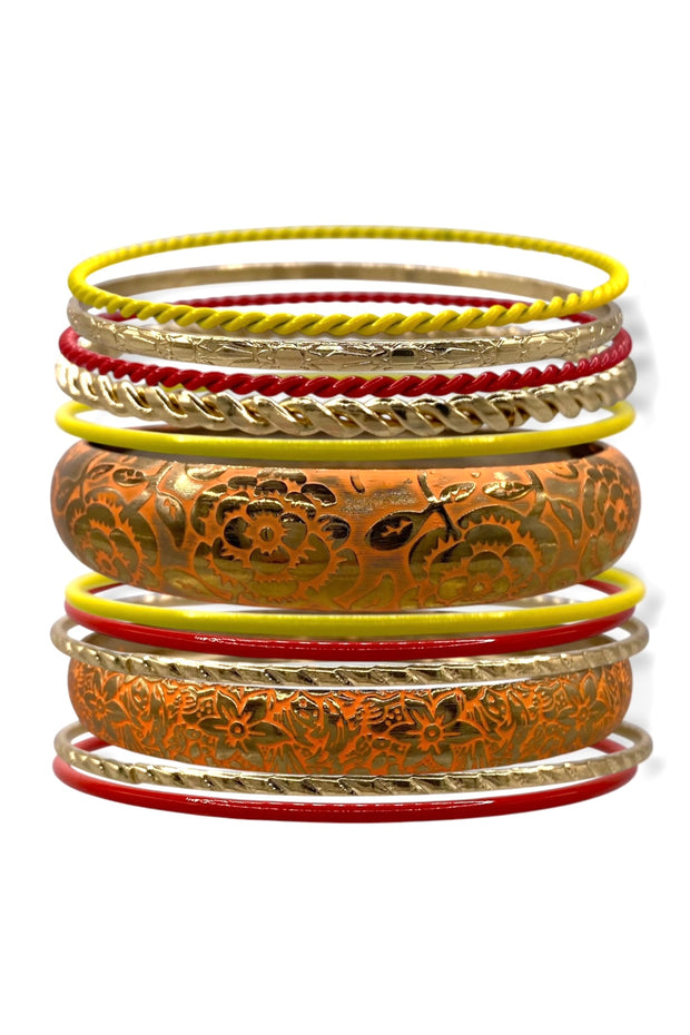 This multi bangle set adds a touch of luxury to any outfit. With its intricate design and versatile style, it's sure to be a staple in your jewelry collection.