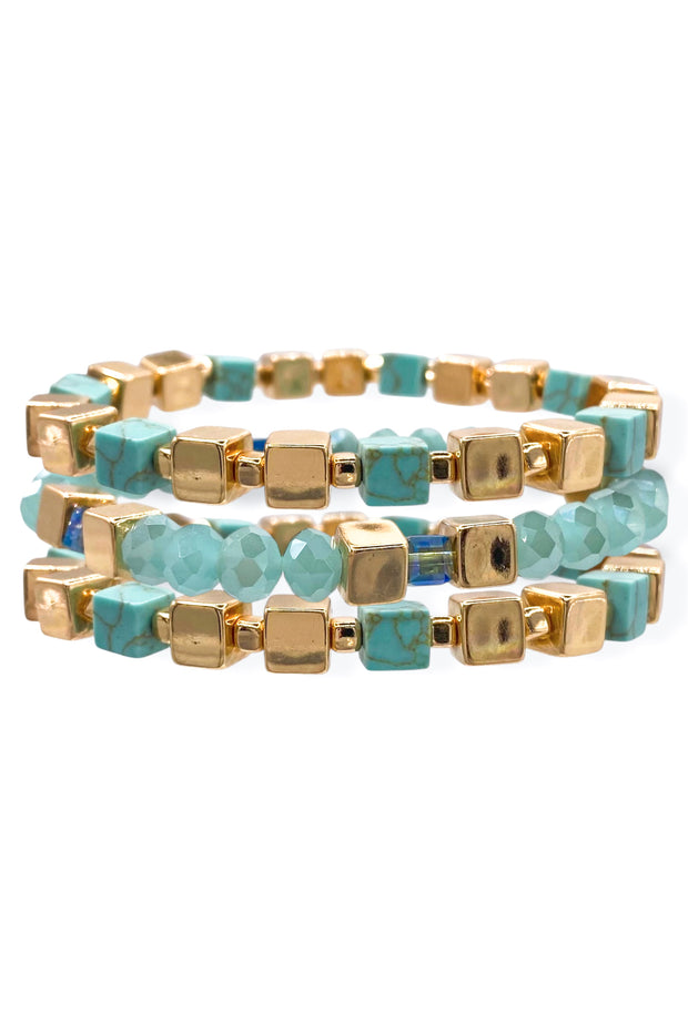 This set features intricately designed beaded bracelets that add a touch of elegance to any look. Perfect for mixing and matching or pairing by itself!