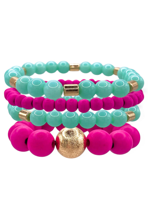 This stylish bracelet set is designed with a combination of wooden and acrylic beads. With a unique blend of materials, these bracelets offer durability and a touch of sophistication to any outfit.
