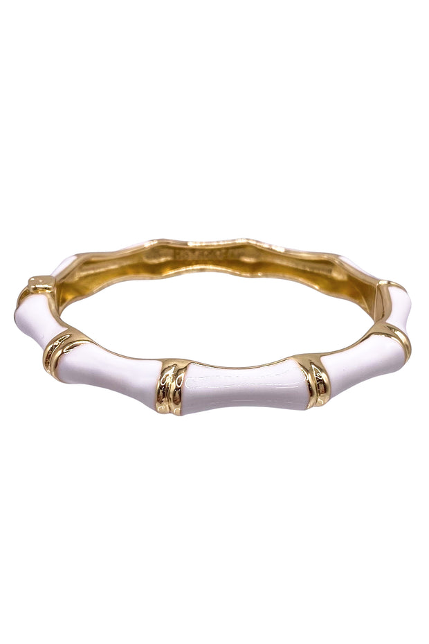 This bangle gold bracelet features intricate detailing and a beautiful white color accent, making it a stunning addition to any outfit. Its classic design and timeless appeal make it the perfect accessory for any occasion. Elevate your style with the Bentley Bracelet.