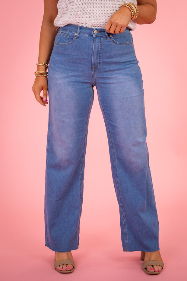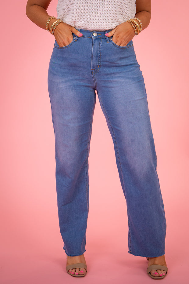You deserve the best, and these Brooke high rise jeans are a first-class choice for high-quality style. We love the lightweight stretch denim rocking a vintage look, button and fly closure, wide leg, hugging upper fit, and full-length inseam that reaches 31".