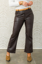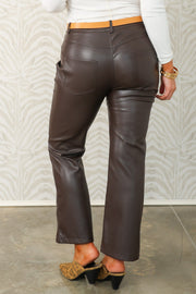 These wide leg pants feature a front zip button closure and convenient side pockets for practical style. Made from soft faux leather, they offer a sleek silhouette with comfortable movement.