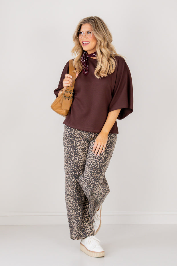The Sweet as Spice Brown Short Sleeve Top features a round neckline and side slits for added comfort and style. Made from breathable, soft material, it keeps you comfortable throughout the day.