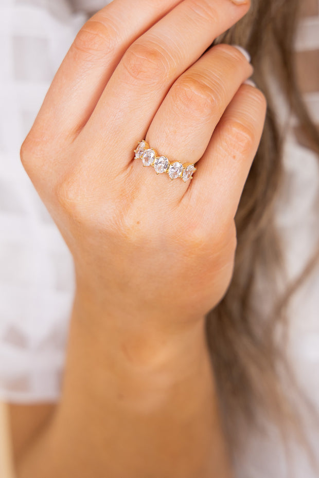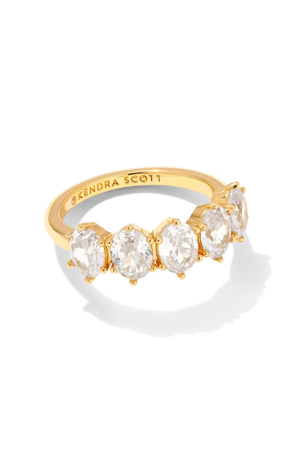 The Cailin Silver Crystal Band Ring in White Crystal has got us wrapped around the finger. This ring is glamorous enough to be worn on its own or can be paired with other statement rings and pops of color for a stacked look.