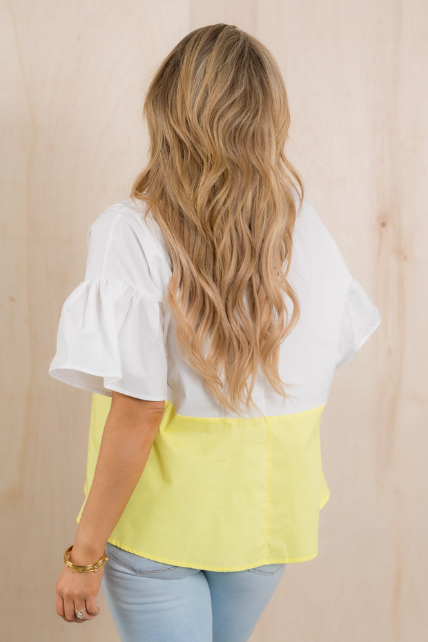 Cami Off White & Yellow Short Sleeve Blouse *Final Sale*