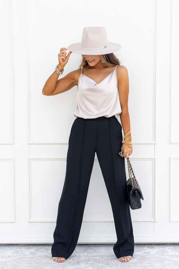 Looks elevated, feels easy. This effortlessly tailored straight-leg trouser features a comfortable pull-on design, elastic back waistband for added stretch and a satin interior that feels silky against your skin. In our luxuriously lightweight (and machine washable) crepe fabric. Pair it with our matching vest or blazer to complete the look.