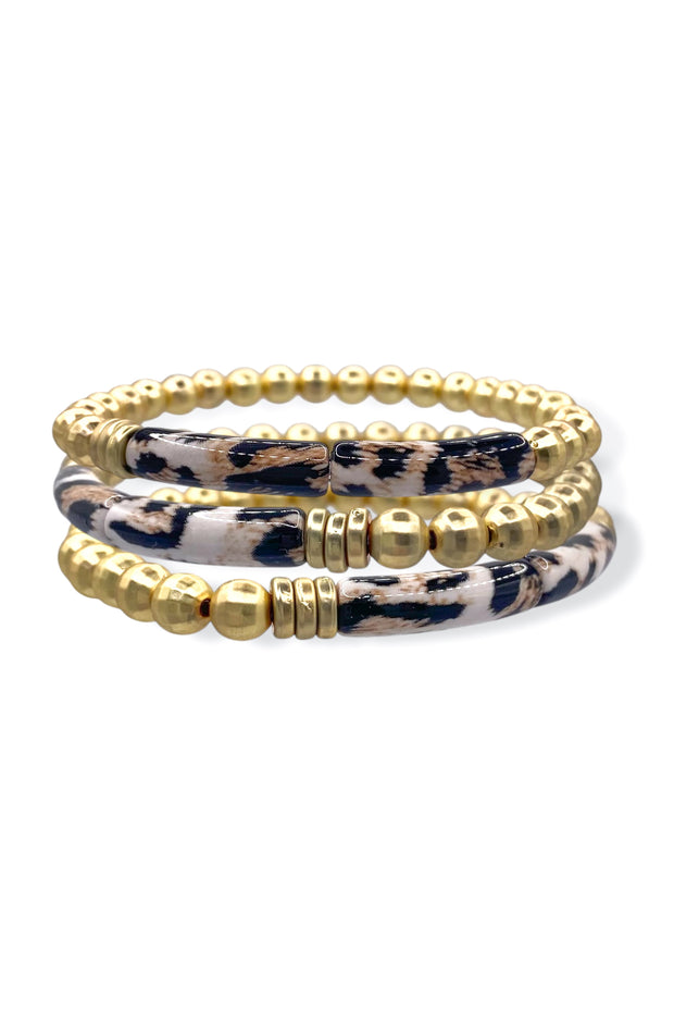 Featuring a combination of CCB and animal print bracelets, this set adds a touch of luxury to any look. Express your unique style with this set and elevate your fashion game.