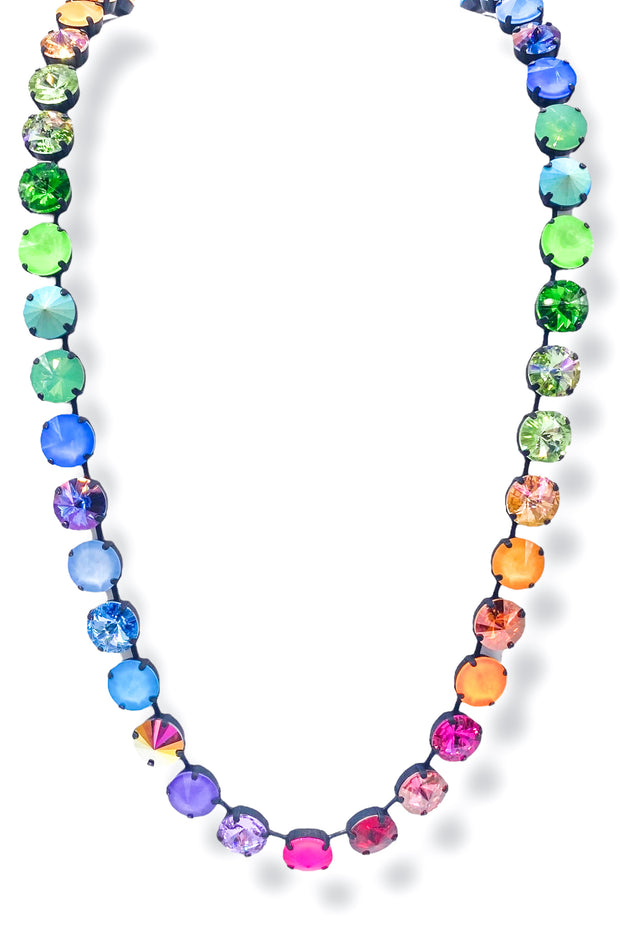 Celia in Watermelon OPAL is the twinkle toe of jewelry! With a shimmering Smutt plating, 12mm crystals and brass base metal, you'll be sure to sparkle and shine. And with a 38" length, you'll be able to reach your style goals in no time! Made with love in Canada.