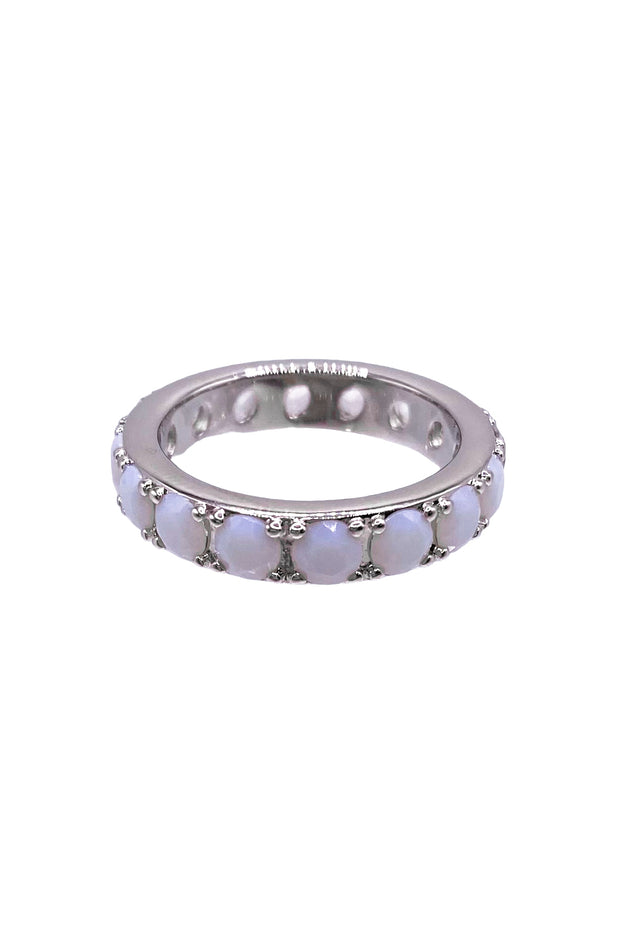 The Chandler Ring from Kendra Scott is a must have. This dainty ring features a reversible design, showcasing both a stunning opal and a sparkling crystal, making it the perfect everyday accessory. Elevate any outfit with the unique mix of silver and white opalite in this must-have piece.