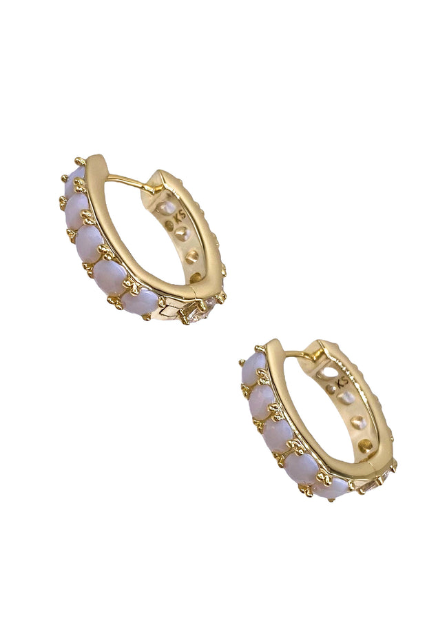 Enhance your everyday style with the Chandler Huggie earrings from Kendra Scott. These gold earrings are reversible, featuring stunning crystal and opal detailing for a touch of luxury. Transform any outfit with these versatile and effortlessly chic huggie earrings.