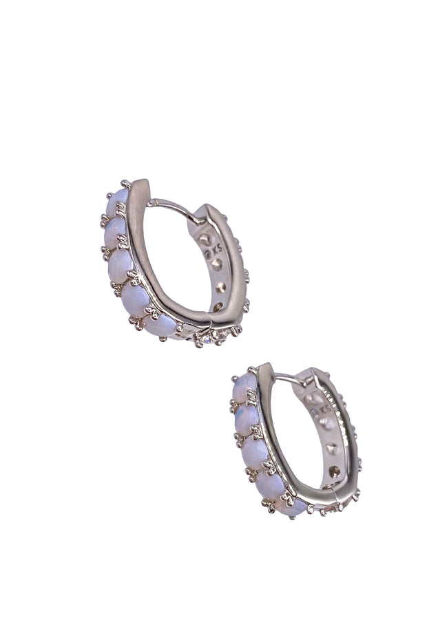 Enhance your everyday style with the Chandler Huggie earrings from Kendra Scott. These silver earrings are reversible, featuring stunning crystal and opal detailing for a touch of luxury. Transform any outfit with these versatile and effortlessly chic huggie earrings.