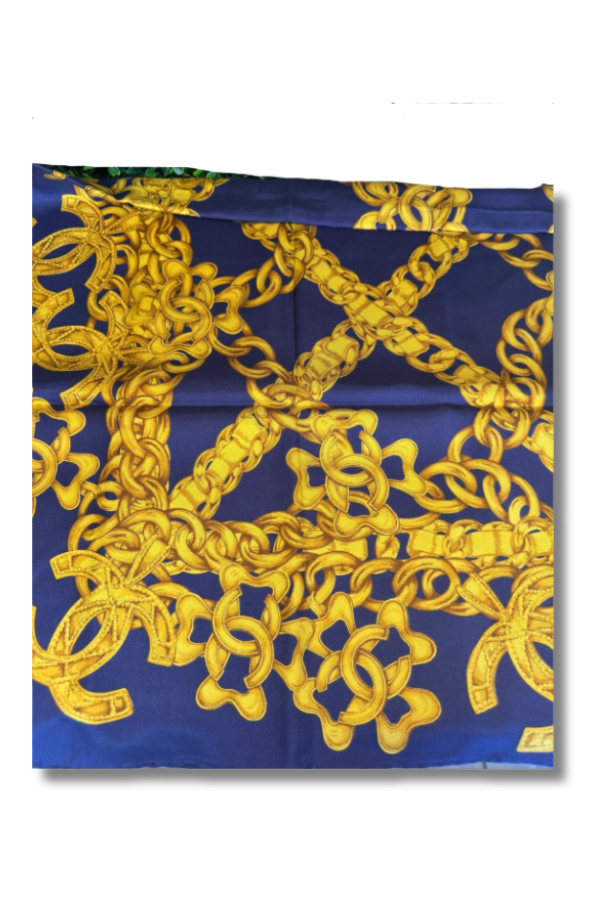 Chanel Navy Silk Scarf w/Gold CC Design