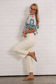 Comfortable and versatile, these high-rise wide leg jeans feature a convenient front zip and button closure with practical front pockets. The stretchy material ensures all-day comfort while the wide leg silhouette creates a flattering, relaxed fit.