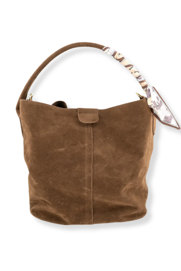 This Suede Bucket Bag combines soft suede texture with a stylish scarf accessory for a unique look. Its roomy interior offers practical storage, making it perfect for everyday use while adding a touch of charm to any outfit. Also comes with a pouch!